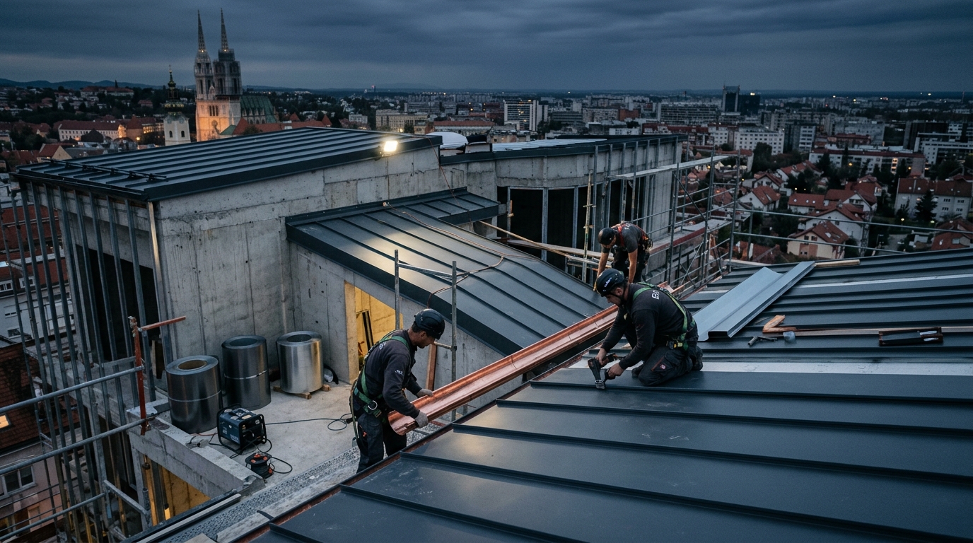 Postavljanje žljebova, snjegobrana, limenih pokrova (Trapez/Crijep panel) i opšava dimnjaka.